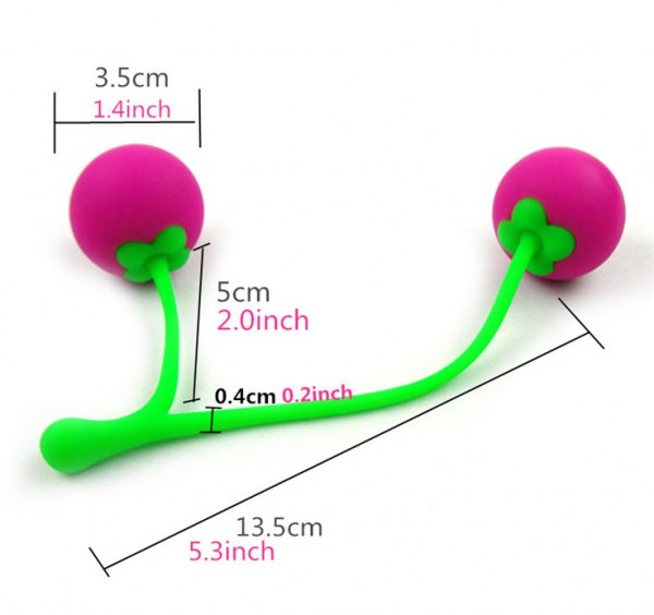 "Intimate Kiss" пред­став­ляют собой два шарика из медицинского силикона. Яркий розовый цвет и вид вишенок делают дизайн игрушки ярким и ориги­наль­ным. Внутри шари­ков встав­лены еще одни, метал­ли­че­ские, кото­рые во время движе­ния уда­ряются о стенки, достав­ляя удо­вольствие и делая тре­ни­ровку более эффективной!